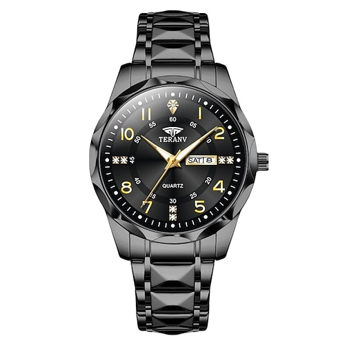 Modische Herren Quarz Uhr Rhombus Digitale Zifferblatt Doppel Kalender Leuchtende wasserdichte Stahlarmbanduhr Strass Dekorationsuhr Geschäfts Uhr Geschenk Favorit