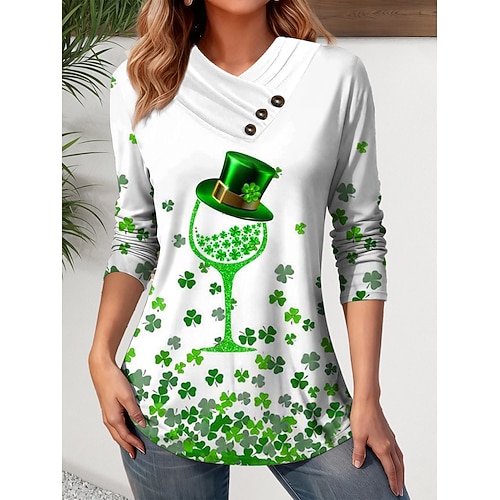 Maglietta da donna St. Patrick's Day grafica moda alla moda classica a maniche lunghe colletto tondo top regolari per stampa quotidiana fine settimana grigia bianca bianca verde estate primavera