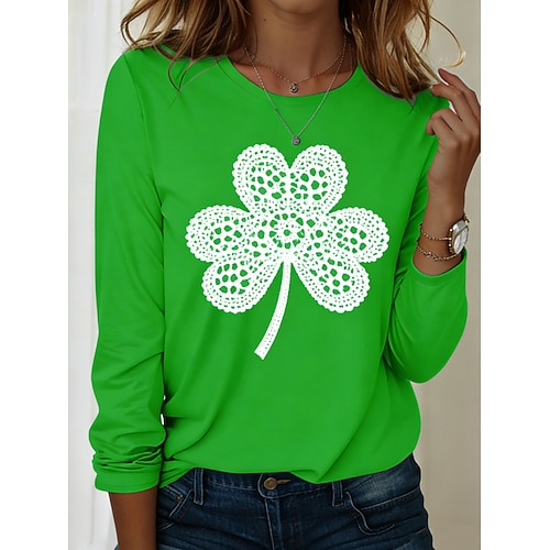 T-shirt da donna per il Giorno di San Patrizio grafica trifoglio vintage elegante classica maniche lunghe collo rotondo top regolari stampa quotidiana fine settimana verde primavera autunno inverno