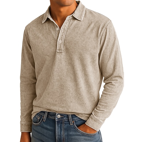 Per uomo Polo in Cotone Polo da Golf Affari Casuale Bavero Classico Manica Lunga Vintage Moda Tinta unica Semplice Stile Vintage Lavato Autunno Inverno Tutte le stagioni Vestibilità regolare Marrone