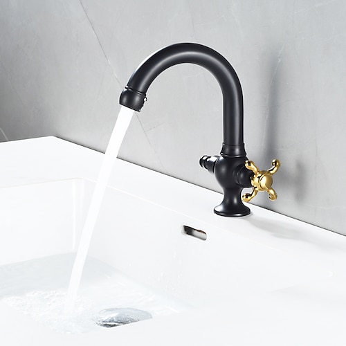 miscelatore per lavabo da bagno alto, girevole a 360° con singola maniglia girevole mono rubinetti per lavabo a ponte, rubinetto per vasca monoblocco per bagno con tubo caldo freddo cromato nero dorato