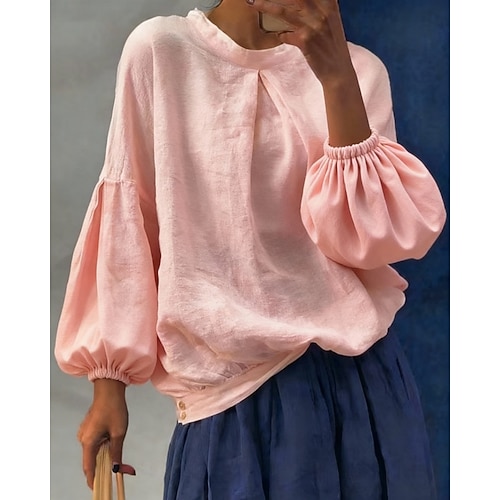 Per donna Camicia Blusa 100% cotone Tinta unica Vintage Elegante Moderno Manica Lunga Manica a Lanterna Girocollo Top Regolari Quotidiano Ferie Uscire Bianco Rosa Azzurro cielo Marrone Albicocca