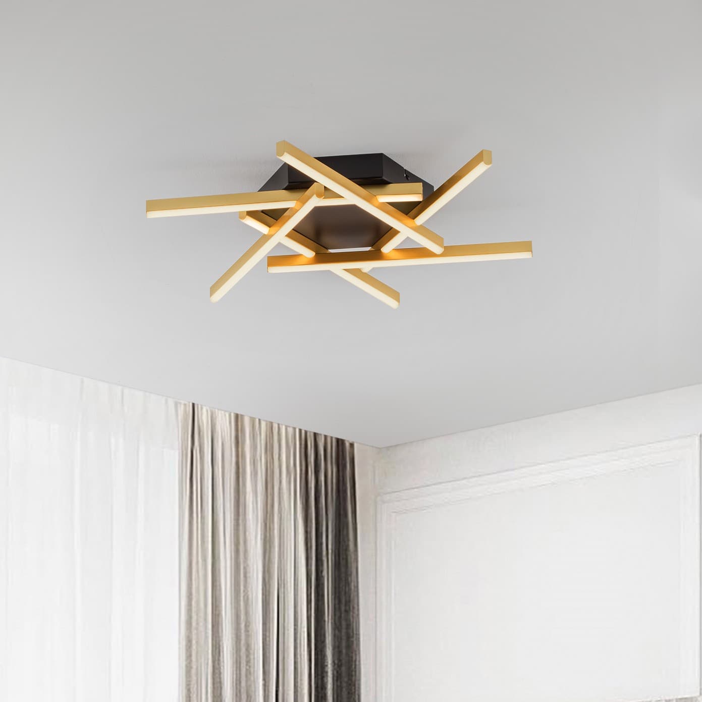 Nova Luce Antama - plafonnier - 60 x 7,5 x 60 cm - 43W dimmable LED inclus - noir sablé et or