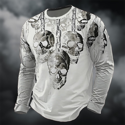Halloween Herren Schädel 3D T Shirt Langarm T-Shirt 3D-Druck Rundhalsausschnitt Hemd Mode Übertrieben Straße Lässig Täglich Schwarz Weiß Sommer Frühling Herbst Bekleidung S M L XL XXL XXXL