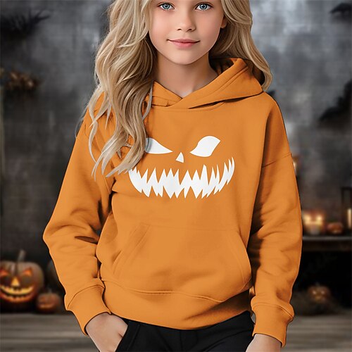 Halloween Mädchen 3D Kürbis Kapuzensweatshirt Langarm Herbst Winter Mode Niedlich Basic Kinder 4-12 Jahre Mit Kapuze Outdoor Lässig Täglich Normale Passform