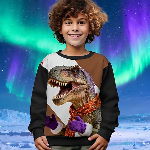 Weihnachten Jungen 3D Dinosaurier Sweatshirt Langarm Frühling Herbst Mode Basic Kinder 4-12 Jahre Rundhalsausschnitt Outdoor Lässig Täglich Normale Passform