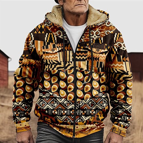 Per uomo Grafico Stile Boho Felpa con Cappuccio Giacca di pelle Moda Etnico Casual Manica Lunga Con Cappuccio All'aperto Sport all'Aperto Uscire Marrone chiaro Arancione scuro Giallo Blu Arancione