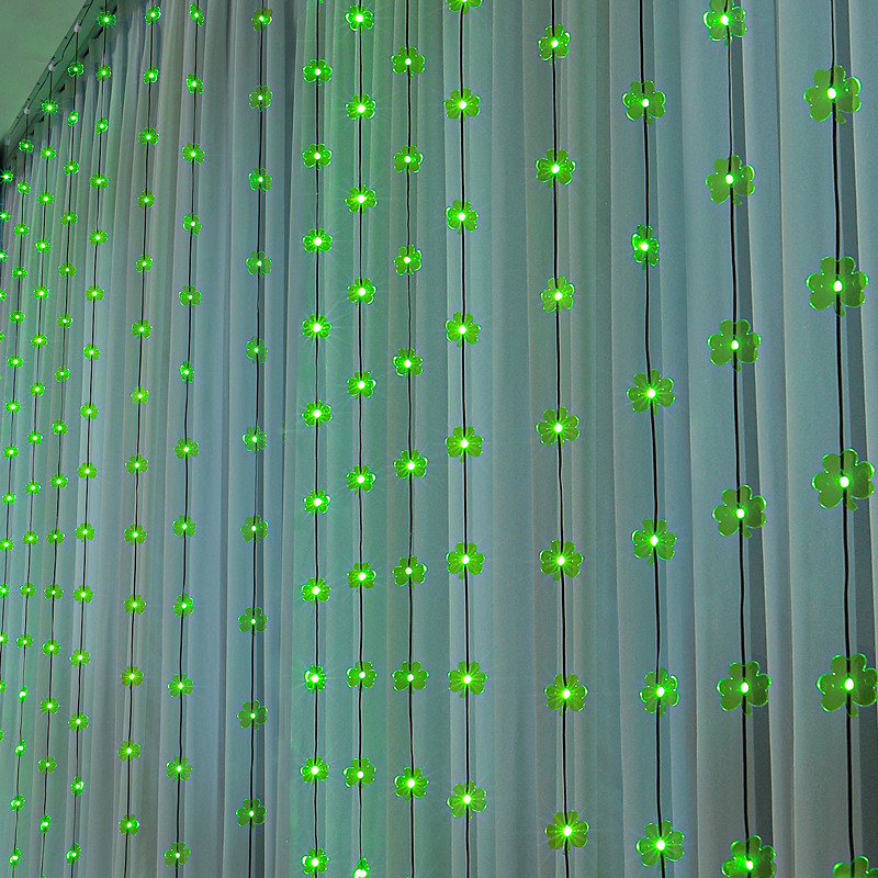 St. Patrick's Day Irish Shamrock Curtain String Lights, 3M Width, Green Light, USB Powered, 8 Functions with Remote, Indoor Bedroom, Living Room, Balcony, Party Holiday Decoration