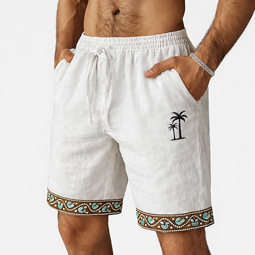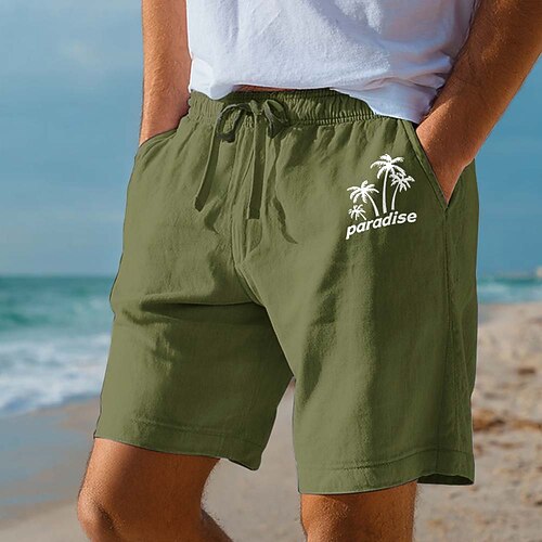 Per uomo Shorts Shorts di Lino Pantaloncini Estivi Shorts da Spiaggia Coulisse Elastico in vita Grafico Albero di Cocco Leggero Traspirante Lunghezza al ginocchio Casuale Quotidiano Spiaggia Vacanza