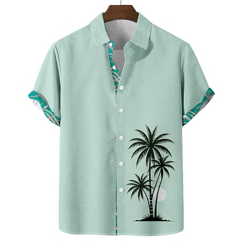Per uomo Albero di cocco Piante tropicali Camicia hawaiana Camicia con bottoni Camicia Aloha Manica corta Hawaiano Ricorrere Da mare Per eventi Abbigliamento mare Estate Primavera Collo ripiegabile