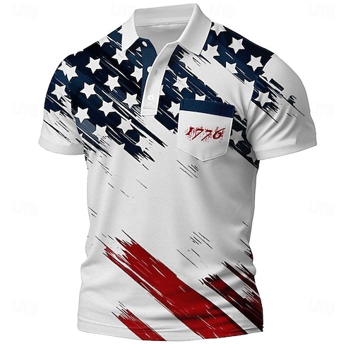 4. Juli 2026 250. Herren Amerikanische US-Flagge Polo Kurzarm Polo-Shirts Hemden mit Kragen Lässig Outdoor Athleisure Alltagskleidung Tasche 3D-Druck Knöpfe Sommer Weiß 1 Weiß Rote