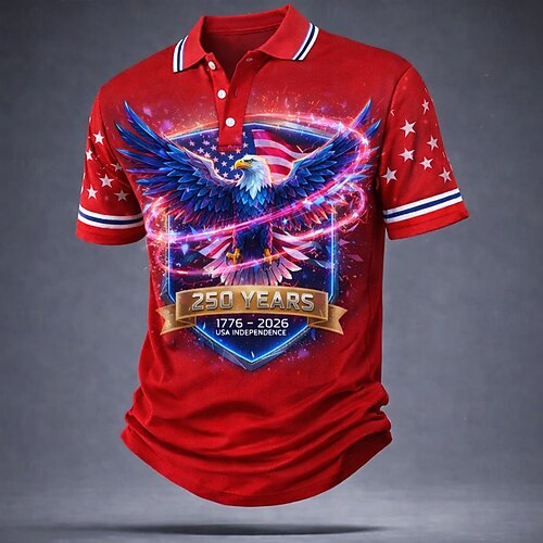 4. Juli 2026 250. Herren Amerikanische Flagge Veteranen Poloshirts Golfshirt Kurzarm Polo-Shirts Hemden mit Kragen Lässig Streetwear Urlaubskleidung Party-Outfits 3D-Druck Knöpfe Rote Marineblau Grün