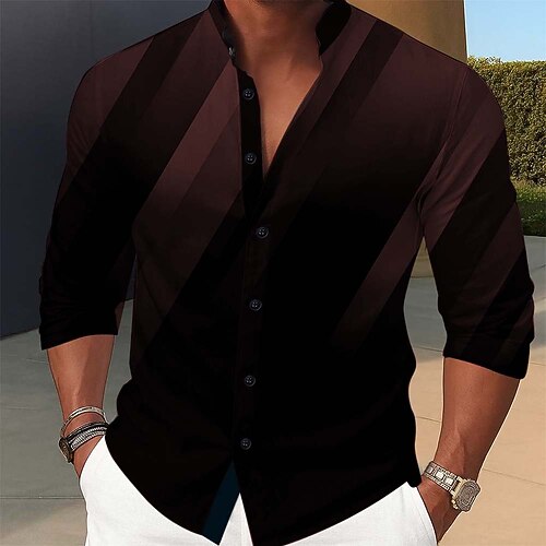 Per uomo Geometrico A righe Colore sfumato Camicia Camicia con colletto alla coreana Manica Lunga Moda Casual Abbigliamento Quotidiano Ferie Primavera Autunno Collo alla coreana Colletto alla coreana