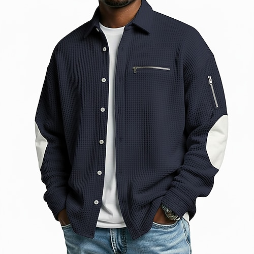 Per uomo Camicia Camicia a nido d'ape Camicia casual Camicia con colletto alla coreana Camicia con Bottoni Blu marino Viola Verde Grigio Azzurro Manica Lunga Semplice Collo alla coreana Quotidiano