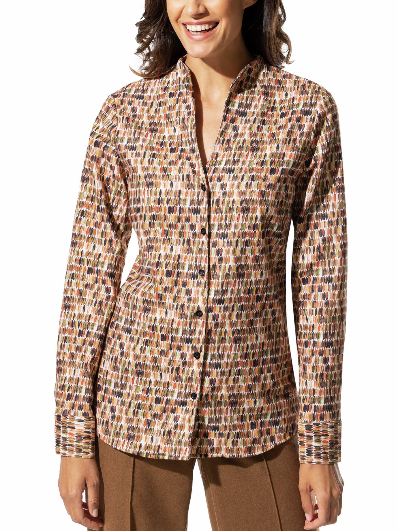 Walbusch Damen Aktiv-Flanellbluse Kelchkragen Orange gepunktet
