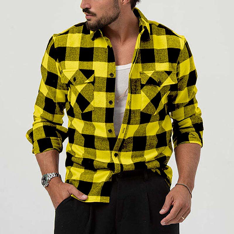 Men's Shirt Flannel Shirt Overshirt Plaid Outdoor Street Yellow Blue Long Sleeve Winter Spring Fall Clothing Apparel