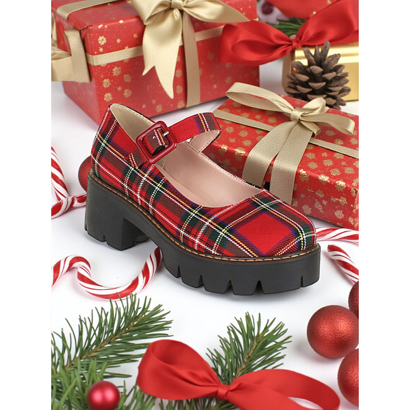 Women's Red Plaid Mary Jane Platform Shoes with Buckle - Festive Christmas Style, Perfect for Holiday Outfits and Christmas Celebrations