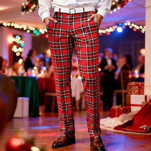 Per uomo Pantaloni Pantaloni Eleganti Chinos Tasca Bottoni Plaid Comodità Quotidiano Affari Lavoro Moda Stile Classico Rosso scuro Rosso Micro-elastico