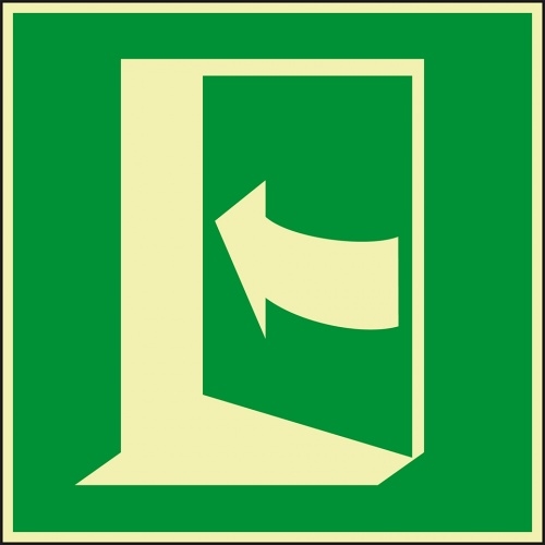 Aufkleber I PERMALIGHT power langnachleuchtend Rettungszeichen Tür öffnet durch Drücken links, Folie, 100x100mm, ASR A1.3, ISO 7010