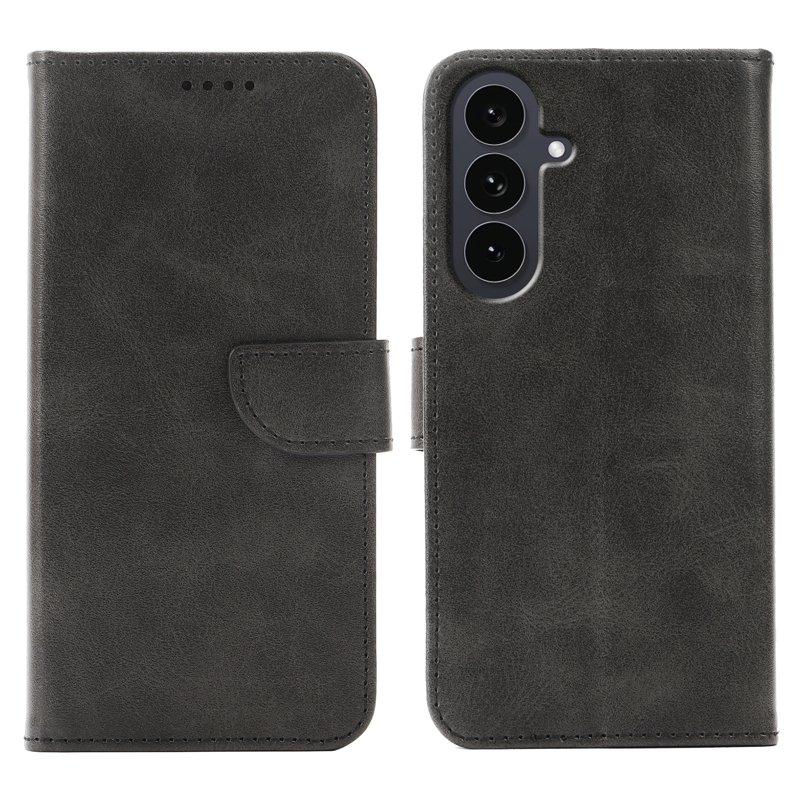 Samsung Galaxy S26 Fodral Ställ Magnetisk Stängning Äkta Läder - Svart