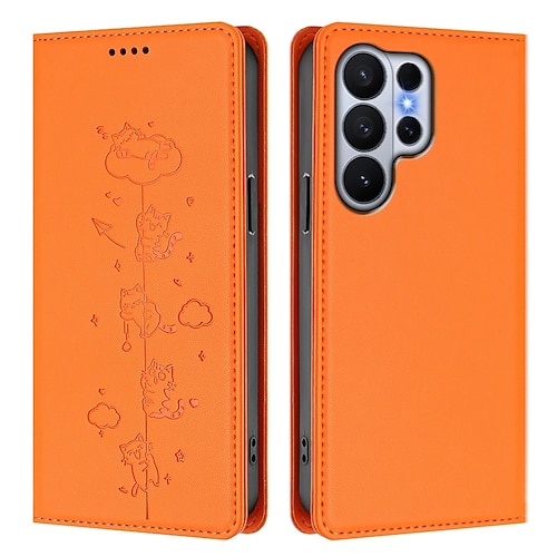 Handy Hülle Handyhüllen Für Samsung Galaxy S26 Ultra Plus S25 Edge S24 S23 FE S22 Plus Ultra Brieftaschenhülle Stoßfest Katze TPU PU-Leder