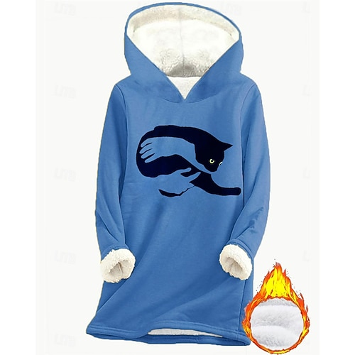 Per donna Felpa con cappuccio Grafico Gatto Caldo Casual Pile Sherpa Manica Lunga Con Cappuccio Top lunghi Streetwear Abbigliamento Quotidiano Casuale Stampato Foderato in pile Rosa scuro Blu Grigio