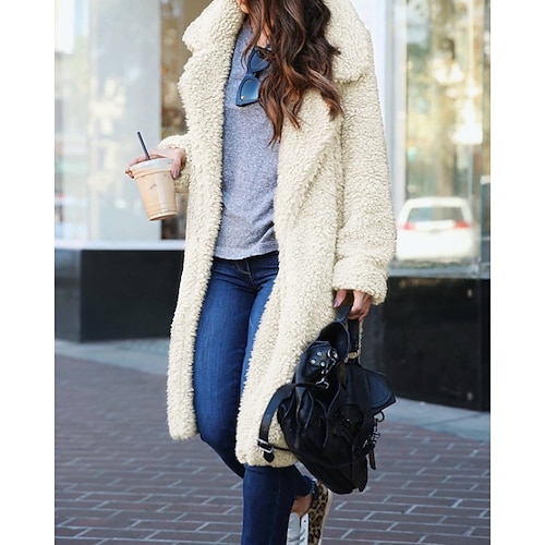 Per donna Cappotto Invernale Giacca Sherpa Cappotto Caldo Confortevole Tasca Bottoni Casual Semplice Vacanza Abbigliamento quotidiano Uscire Lungo Collo ripiegato Vestibilità regolare Manica Lunga