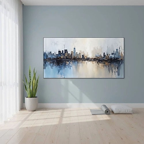arte murale astratta paesaggio urbano decorazione murale tela pittura blu colorato tema città dipinti opere d'arte moderna per soggiorno sala da pranzo camera da letto ufficio decorazione