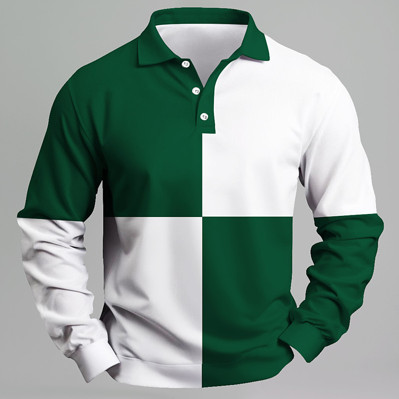 Men's Zip Polo Long Sleeve Polo Shirts Collar Business Casual Vacation Party Evening Wear Dailywear 3D Print Spring Fall Winter Black Blue Green