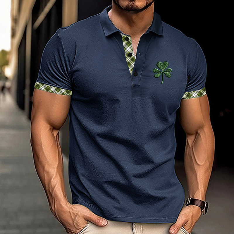 Men's Golf Shirt Short Sleeve Polo Shirts Collared Shirts Casual Vacation Wear Party Outfits Buttons 3D Print Summer Navy Blue Blue Green