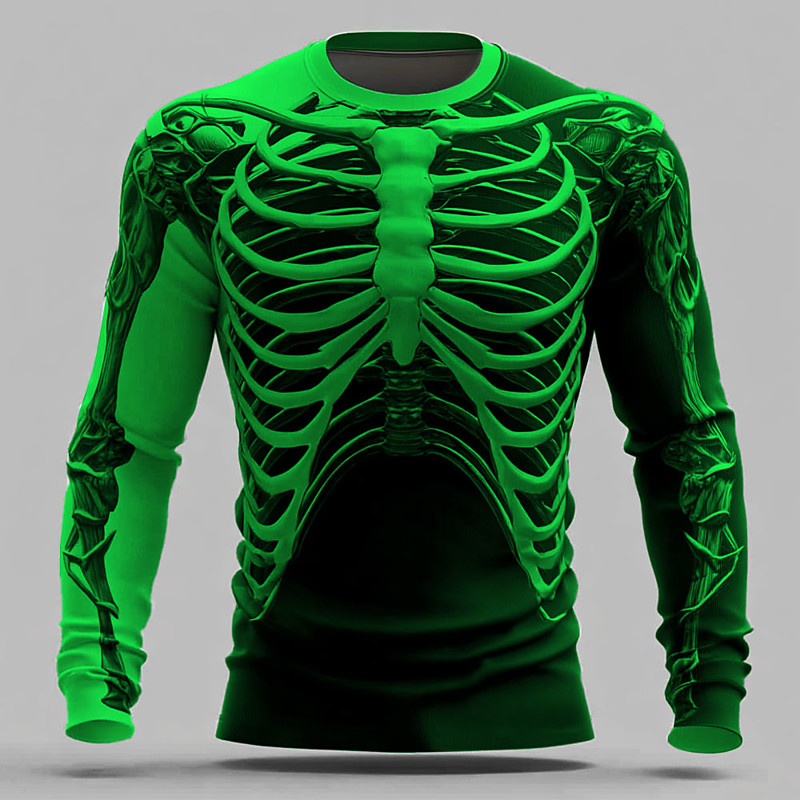 Halloween Men's 3D Skeleton T Shirt Long Sleeve T shirt 3D Print Crew Neck Shirt Fashion Exaggerated Street Casual Daily Blue Orange Green Summer Spring Fall Clothing Apparel S M L XL XXL XXXL