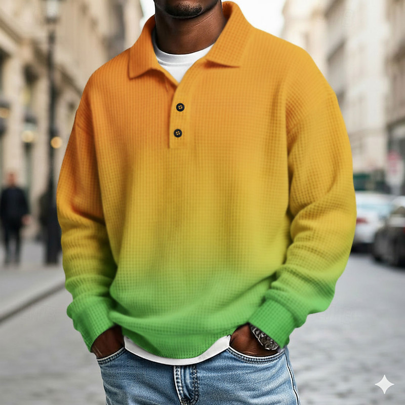 Men's Gradient Ramp Waffle Polo Shirts Long Sleeve Polo Shirts Lapel Sportswear Casual School Athleisure Daily Wear 3D Print Spring Fall Winter Blue Yellow Red