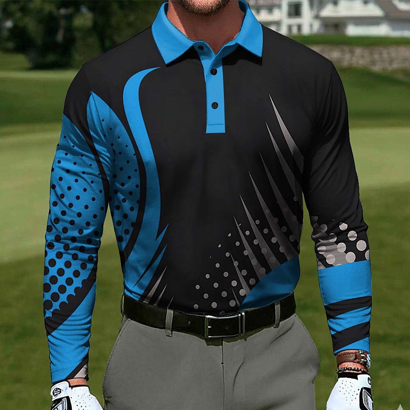 Men's Geometric Golf Sports Polo Shirts Long Sleeve Polo Shirts Lapel Casual Outdoor Athleisure Daily Wear 3D Print Buttons Spring Fall Blue Yellow Red