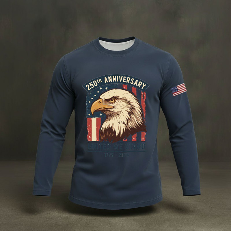 America's 250th Anniversary Men's Graphic Flag Eagle T Shirt Tee Top Long Sleeve Shirt Long Sleeve T shirt 3D Print Crew Neck Shirt Fashion Daily Basic Daily Vacation Street Navy Blue Khaki Army Green