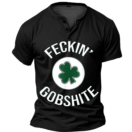 Per uomo Grafico Trifoglio Maglietta Maglia Henley Manica Corta Stampa 3D Moda Designer Confortevole Giorno di San Patrizio Quotidiano Primavera Autunno Nero Verde Henley Maglietta Henley
