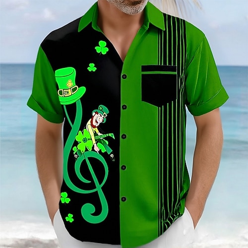 Festa di San Patrizio Per uomo Trifoglio Note Musicali folletto Camicia Camicia Estiva Camicia con Bottoni Manica Corta Moda Casual Ferie Estate Primavera Collo ripiegato Stampa 3D camicie con