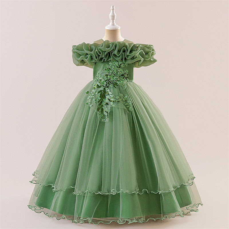 Kids Girls' Flower Girl Dress Dress Solid Colored Sleeveless Performance Wedding Party Lace Ruched Mesh Cute Princess Polyester Maxi A Line Dress Tulle Dress Flower Girl's Dress Spring Fall 4-13 Years