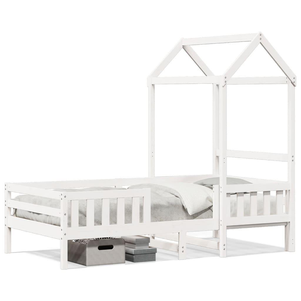 Sengeramme med tag 75x190 cm massivt fyrretræ hvid
