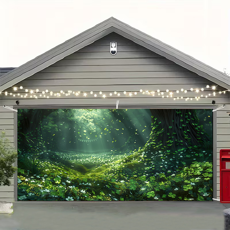 St. Patrick's Day Tapestry Garage Door Cover Large Hanging Backdrop Shamrock Cute 3D Party Outdoor Holiday Shooting Backgrounds Yard Home Decor