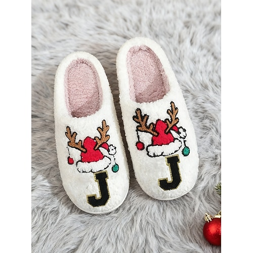 comode pantofole natalizie da donna con design a renna: morbide pantofole con 26 lettere tra cui scegliere, a tema natalizio, perfette per rilassarsi e come regalo