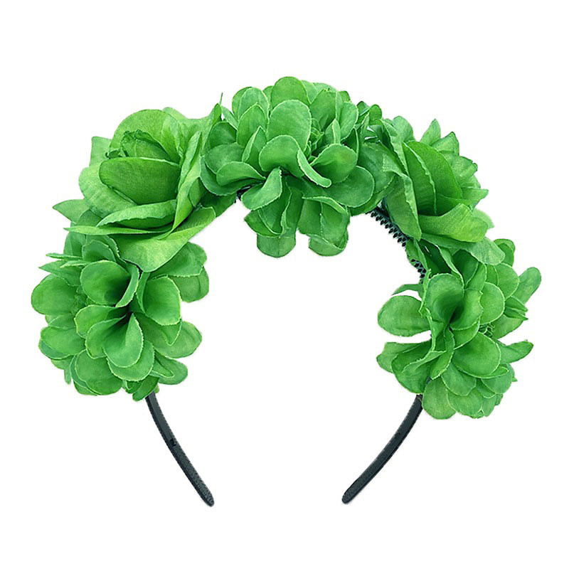 St. Patrick's Day Green Flower Headband, Large Floral Crown Hair Hoop, Irish Festival Parade Costume Accessories for Women and Girls