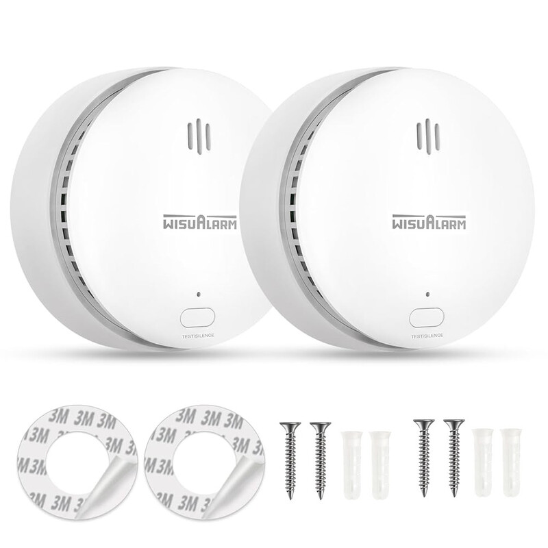 Wisualarm Détecteurs de fumée pour la maison, batterie 10 ans, alarme incendie avec bouton test et bouton silencieux, certifiés par TÜV, conformes à la norme EN14604 (2 pièces)