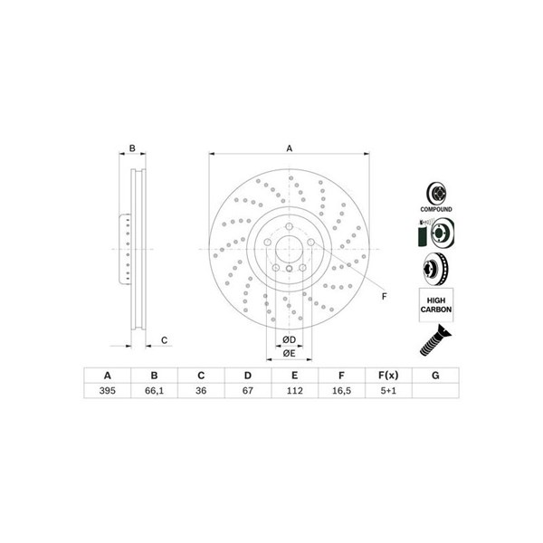 Jarrulevy, Etuakseli, oikea Bosch 0 986 479 F55 - bmw - OE 34 10 6 887 658, 34 11 6 878 046