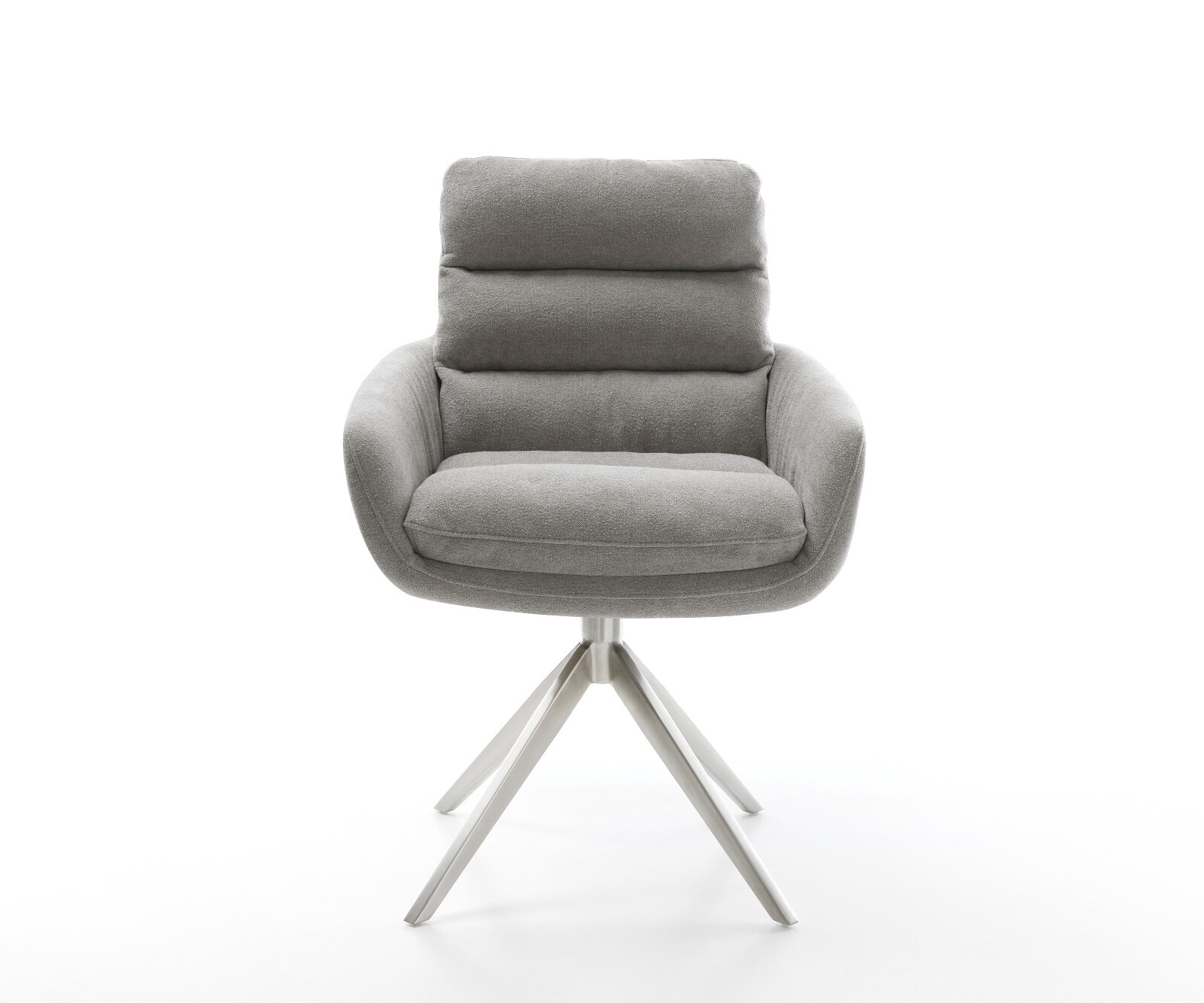 DELIFE Draaistoel Abelia-Flex met armleuning zachte stof met structuur grijs kruisframe breed roestvrij staal 360° draaibaar rocker-functie