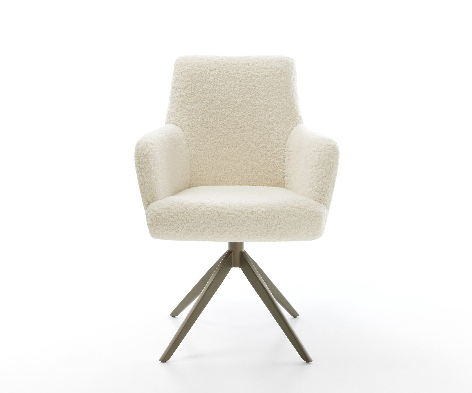 DELIFE Draaistoel Alja-Flex met armleuning pluchen crème-wit kruisframe breed wit 360° draaibaar rocker-functie pocketveer kern