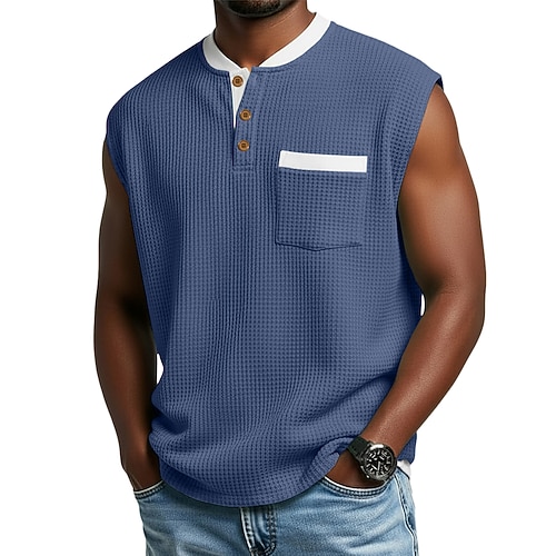 Per uomo Camicia a nido d'ape Canotta a nido d'ape Canotta Maglia Henley Senza Maniche Henley Estate Semplice Testurizzato Moda Designer Casual Bottoni All'aperto Palestra Uscire Nero Viola Verde