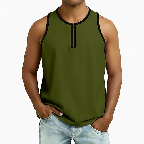 Da uomo Canotta Gilet Canottiera Maglietta senza maniche Senza Maniche Collo a U Estate Blocco di colori Patchwork Moda Classico Casual Cerniera Casuale Palestra Streetwear Nero Bianco Blu marino