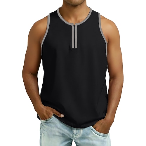 Per uomo Canotta Maglietta smanicata Canottiera Maglietta senza maniche Senza Maniche Colletto Henley Estate Blocco di colori Moda Designer Muscolo Bottoni All'aperto Uscire Palestra Nero Bianco Rosso