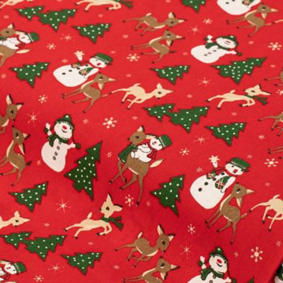 Tissu coton "bonhomme de neige et chevreuil", rouge/coloré, série "Mona"
