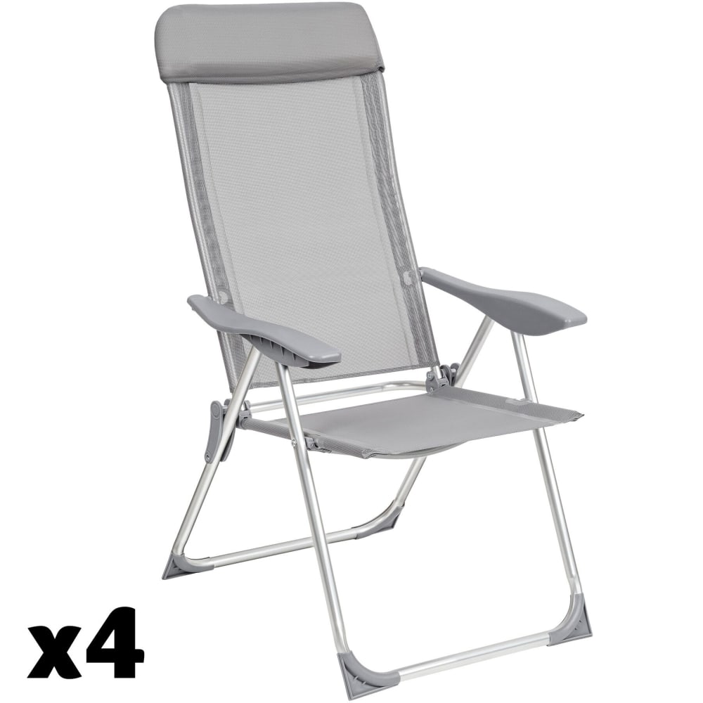 Set di 4 sedie da giardino pieghevoli in alluminio grigio